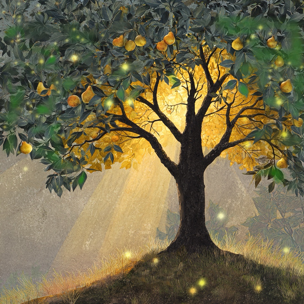 The sun behind him seemed to be setting, and I worried that it would get dark and I would have to leave him. I never wanted to leave him. I never wanted to come away from his protection, his strength, his fruit and his shade. Then Wisdom reassured me, like a mother comforting her little child. “There is no night here. There is no darkness, as you know darkness. The light is in you.” This calmed me and took away my worry.